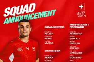 瑞士名单:扎卡领衔,科贝尔、阿坎吉、亚沙里、恩多耶在列