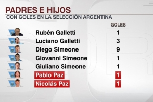 据ESPN统计,巴勃罗·帕斯和尼科·帕斯成为第三对为阿根廷国家队破门的父子,此前加莱蒂父子、西蒙尼父子做到这点。