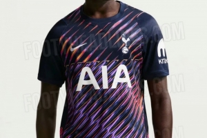 热刺新赛季客场球衣谍照:藏青色底色,搭配粉、紫、橙锯齿花纹