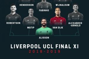 18/19赛季欧冠决赛利物浦首发阵容: