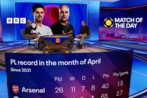 体育资讯4月13日讯 BBC统计了2021年以来4月份冲刺阶段阿森纳、曼城在英超比赛中的战绩,阿森纳场均1.5分、曼城场均2.7分。