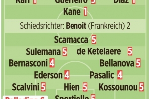 替补:德容恩(4)、萨马尔季奇(3)、克尔斯托维奇(4)、拉斯帕多里(4)